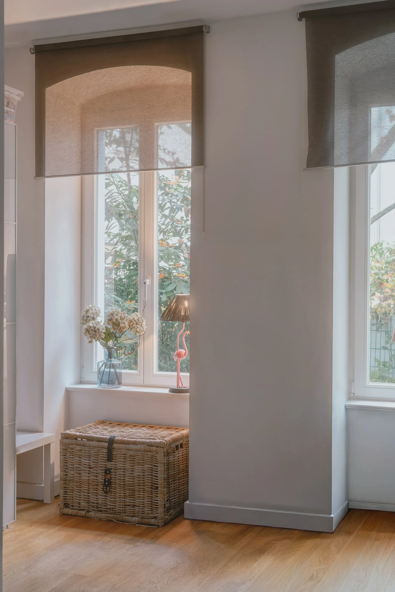 Die durchdachte Raumaufteilung wirkt großzügig. Der offene Wohn- und Küchenbereich ist von dem privateren Schlaf- und Arbeitsbereich durch eine tragende Mittelwand getrennt. Die geräumige Deckenhöhe und große Holzfenster schaffen eine Atelier-artige Wohnatmosphäre.