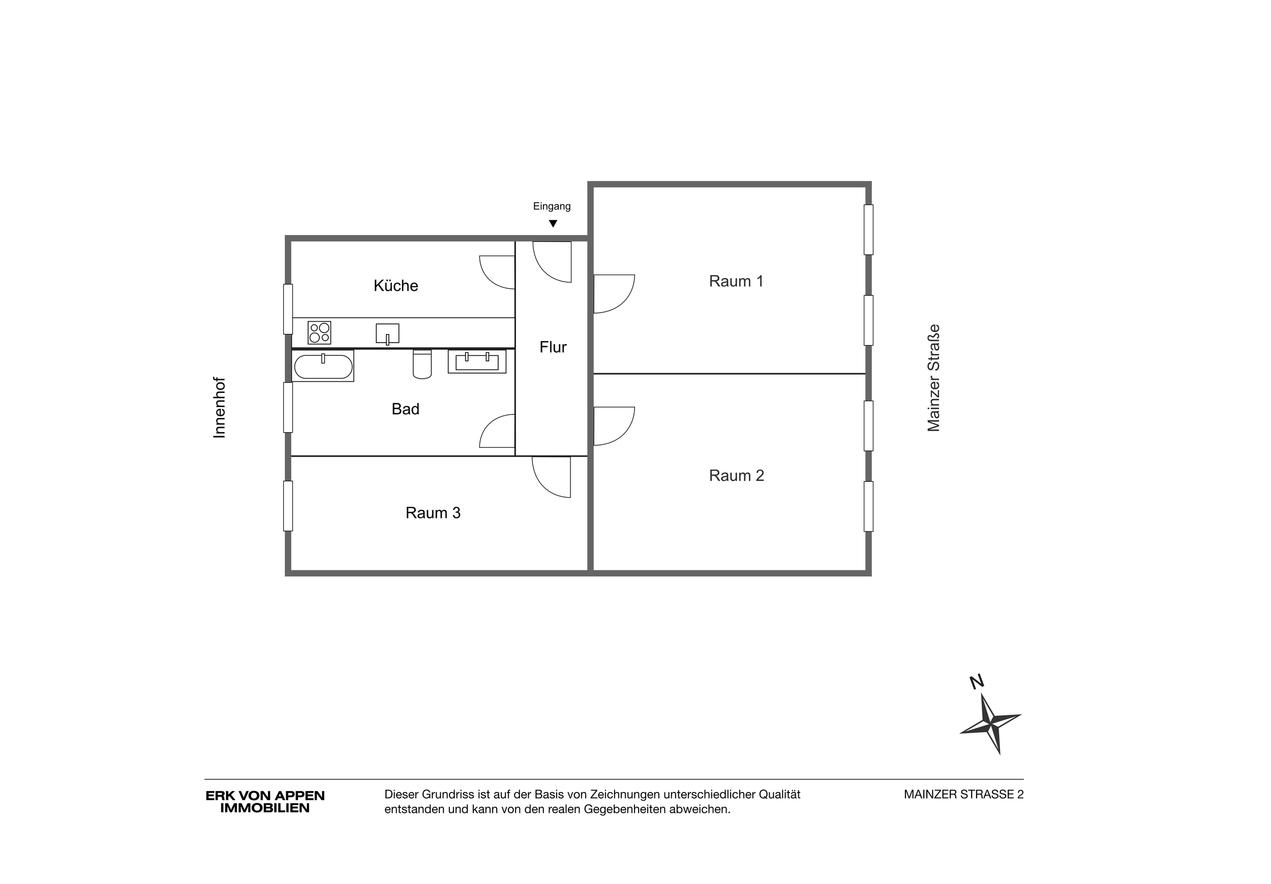 Die typische Gründerzeit-Wohnung ist ideal geschnitten. Zwei nahezu gleich große Zimmer gehen nach Osten, während zum hofseitigen Westen die Küche, das Badezimmer und ein Arbeits- bzw. Gästezimmer liegen. Das geräumige Bad verfügt über eine Wanne und ein Doppelbecken. 2021 wurde die Einbauküche erneuert, inklusive hochwertigen Geräten von Miele und Bosch sowie viel Stauraum. Die bauzeitlichen Eichendielen verleihen der Wohnung Wärme und Charakter, und durch die Ost-West-Ausrichtung begleitet das Sonnenlicht ihre Bewohner durch den Tag.